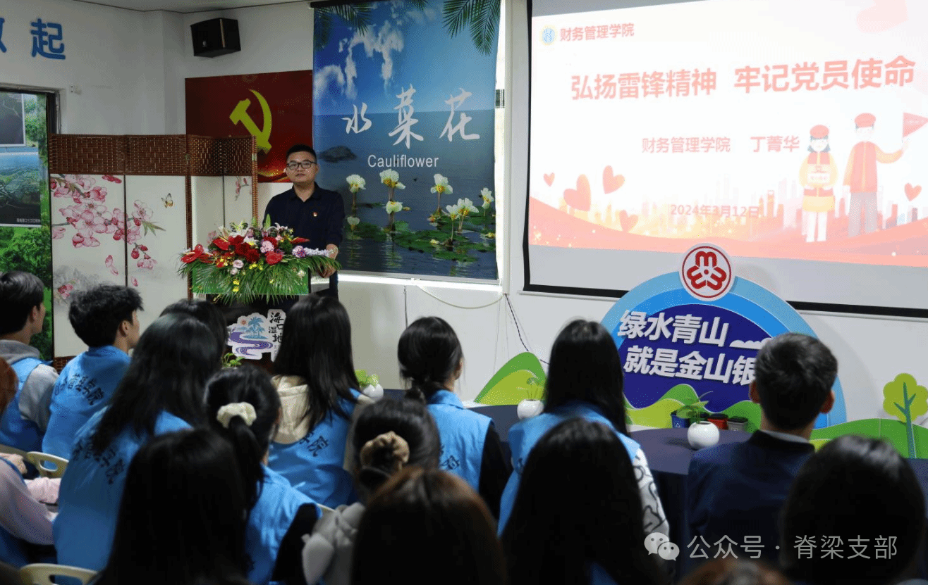 党支部书记丁菁华上党课。他向大家介绍了雷锋生平故事和雷锋精神内涵,提出向雷锋学习:一是深刻把握雷锋精神的时代内涵,让雷锋精神在新时代绽放更加璀璨的光芒;二是学习雷锋对马克思主义的坚定信仰,筑牢共产主义理想信念;三是学习雷锋善于挤和善于钻的“钉子”精神,不断提升专业技能。他号召大家践行雷锋精神,牢记党员使命,把崇高理想信念和道德品质追求转化为具体行动,为海南自由贸易港建设和学院改革发展作出自己应有的贡献。